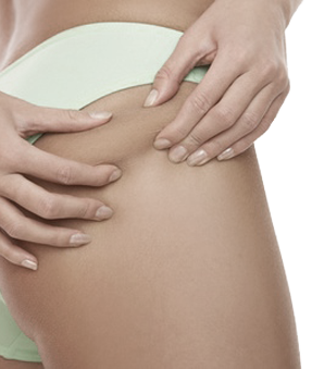 Hier handelt es sich um eine Fettansammlung im Bereich der Oberschenkelaußenseite. In diesem Fall wird durch kleine Hauteinschnitte in der PO-Falte Fett abgesaugt (Liposuktion). ist zusätzlich eine Hauterschlaffung vorhanden, muss auch hier eine Straffungsoperation vorgenommen werden.
